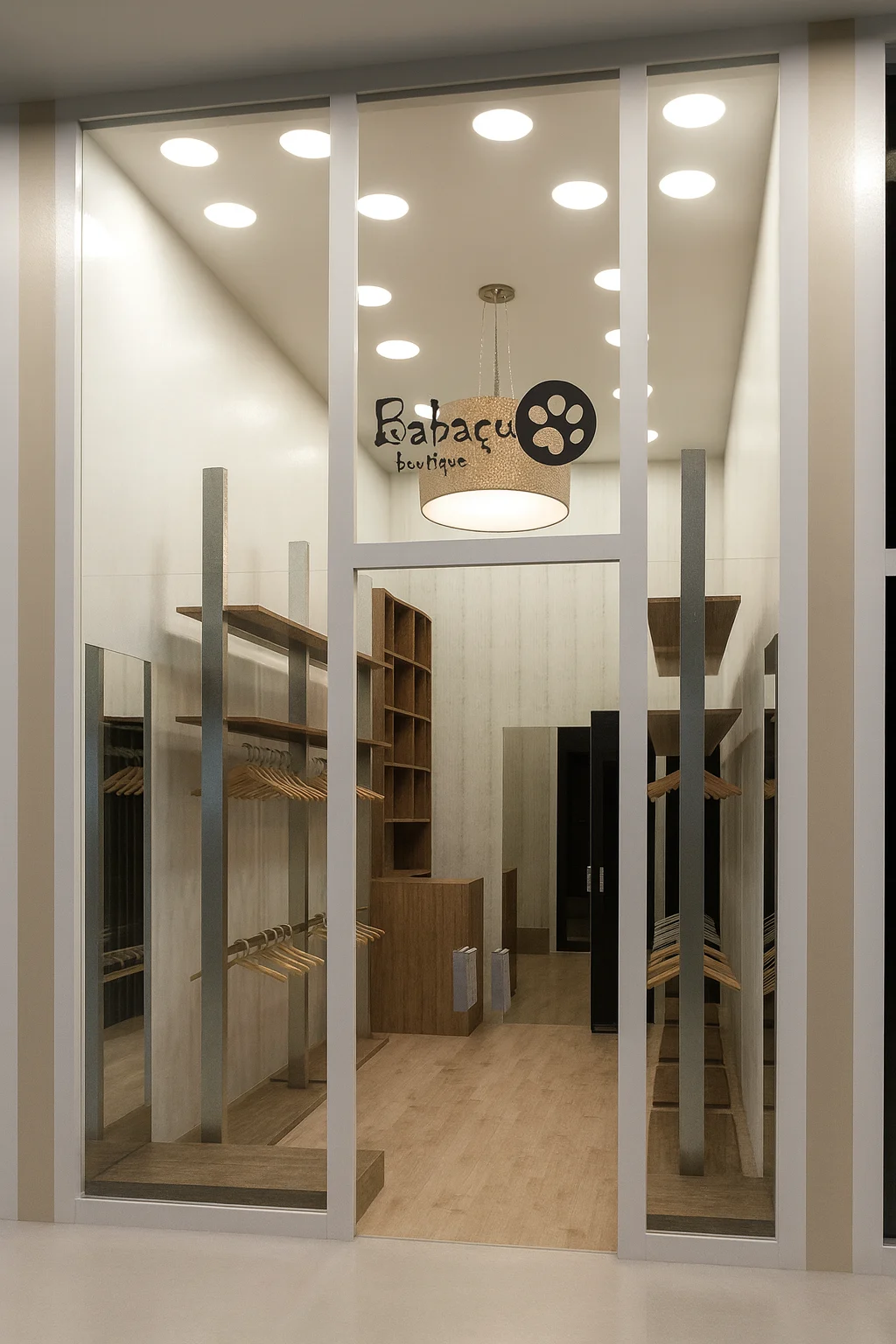 Localizada em um shopping de Sorocaba, a Babaçu Boutique foi concebida a partir da ideia de criar um ambiente contemporâneo e acolhedor, que valorizasse a exposição das peças e proporcionasse uma experiência agradável ao público.
