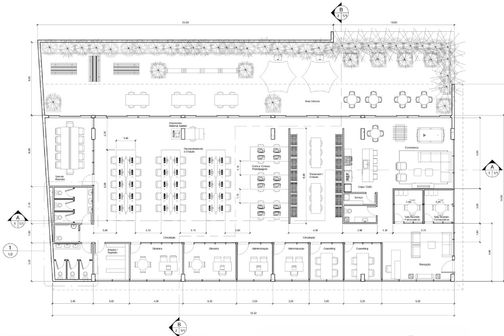 O projeto do Ateliê de Moda Coruja ocupa uma área de 763 m² e foi concebido como um espaço corporativo dinâmico e inspirador, voltado à criação, produção e exposição de moda.
